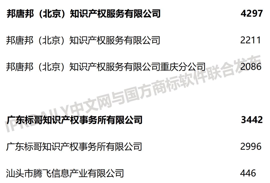 2019上半年全国商标代理机构申请量榜单(TOP100)