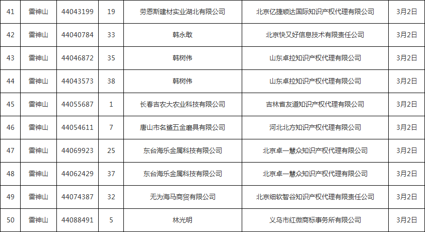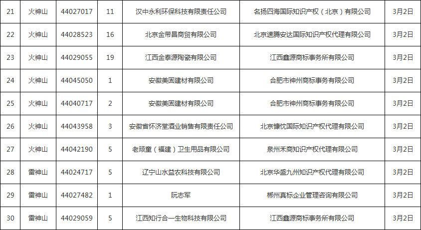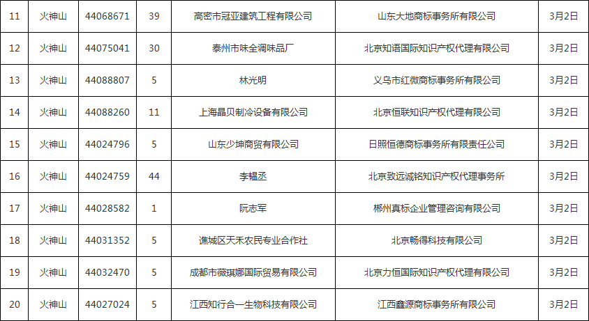 为严厉打击与疫情相关的恶意商标注册申请行为,根据商标法第十条第一款第(八)项的规定,我局对第44045053号“火神山”等63件商标注册申请作出驳回决定。现予以公布: