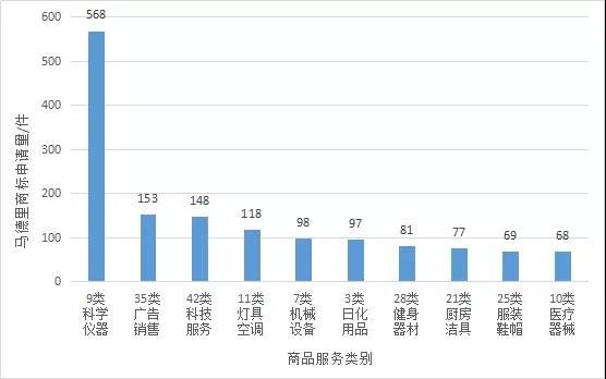 3、排名前3的马德里商标国际注册类别近5年来发展分析