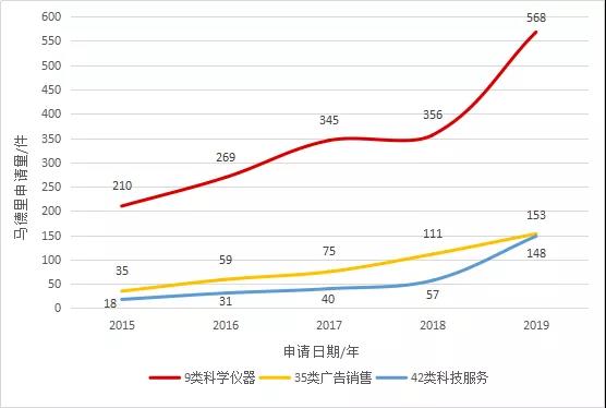 马德里商标国际注册申请量排名前3的商品服务类别近年来的发展趋势,反映了广东省在积极调整产业结构、抓创新驱动,从根本上不断加强出口产品的国际竞争力和应对风险能力。