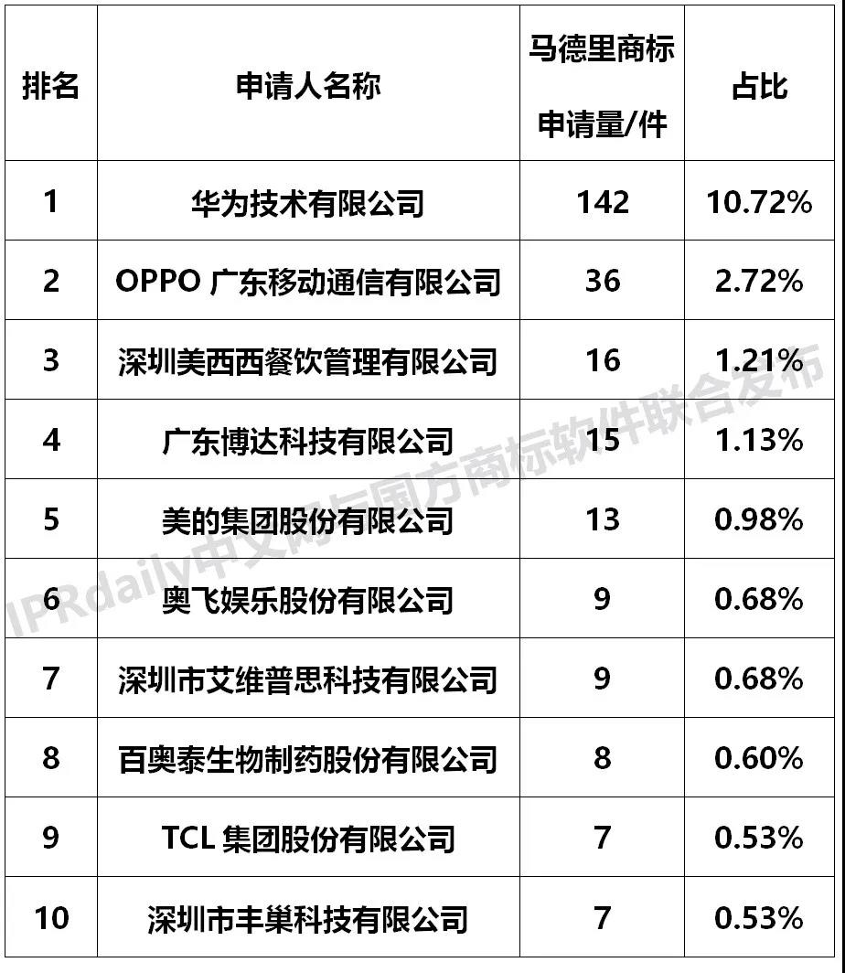 整理:IPRdaily 数据:国方商标软件