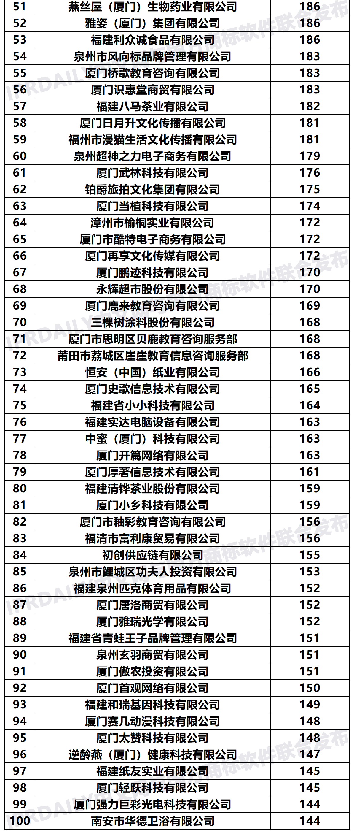 2020年「福建申请人」商标申请量排行榜(TOP100)