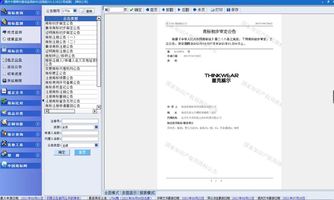 第1754期《商标公告》数据已更新,请登录软件查看监测结果!
