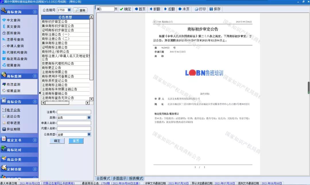 第1758期《商标公告》数据已更新,请登录软件查看监测结果!